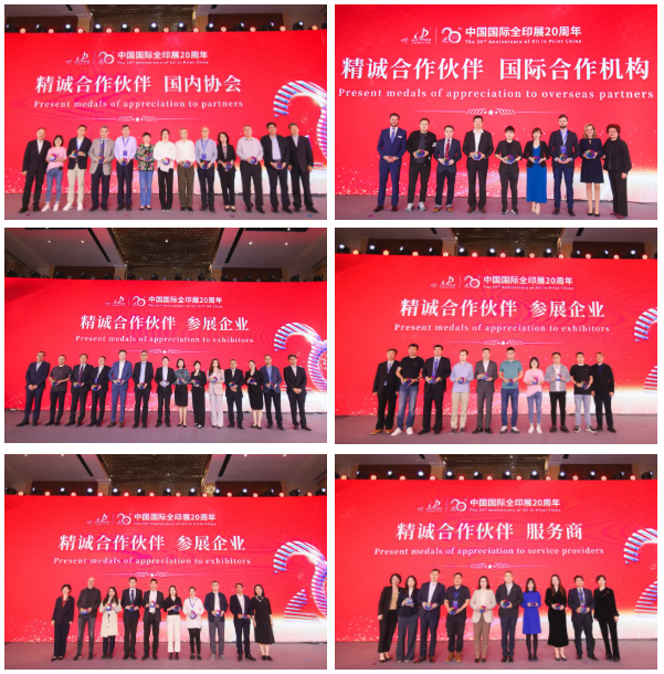 座谈会还进行了全印展20周年互动致谢仪式,向20年来精诚合作的国内外合作伙伴代表、参展企业代表、全印展服务商颁发了感谢牌。