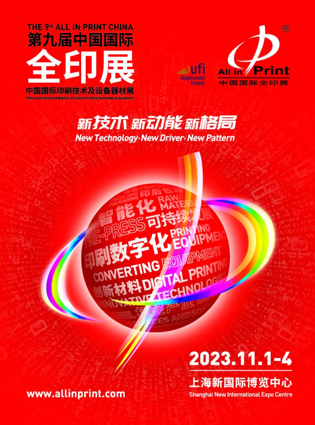 由中国印刷技术协会、中国印刷科学技术研究院和杜塞尔多夫展览(上海)有限公司共同主办的第九届中国国际全印展将于2023年11月1-4日继续在上海新国际博览中心举办,预计展出面积12万平米,将成为2023年末全球印刷包装人不容错过的盛宴。