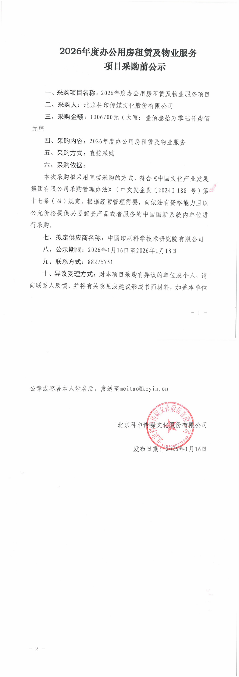 2026年度办公用房租赁及物业服务 项目采购前公示